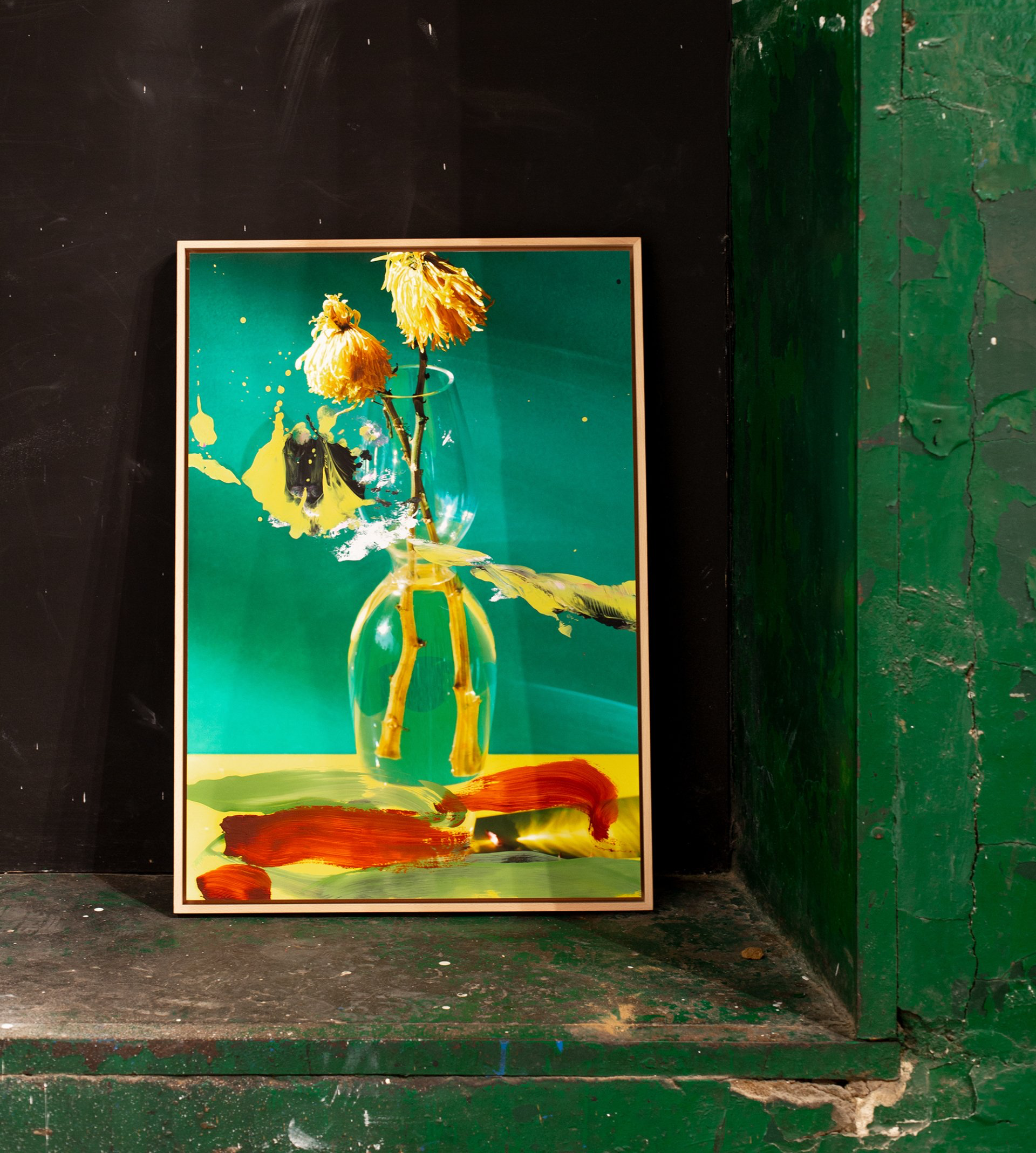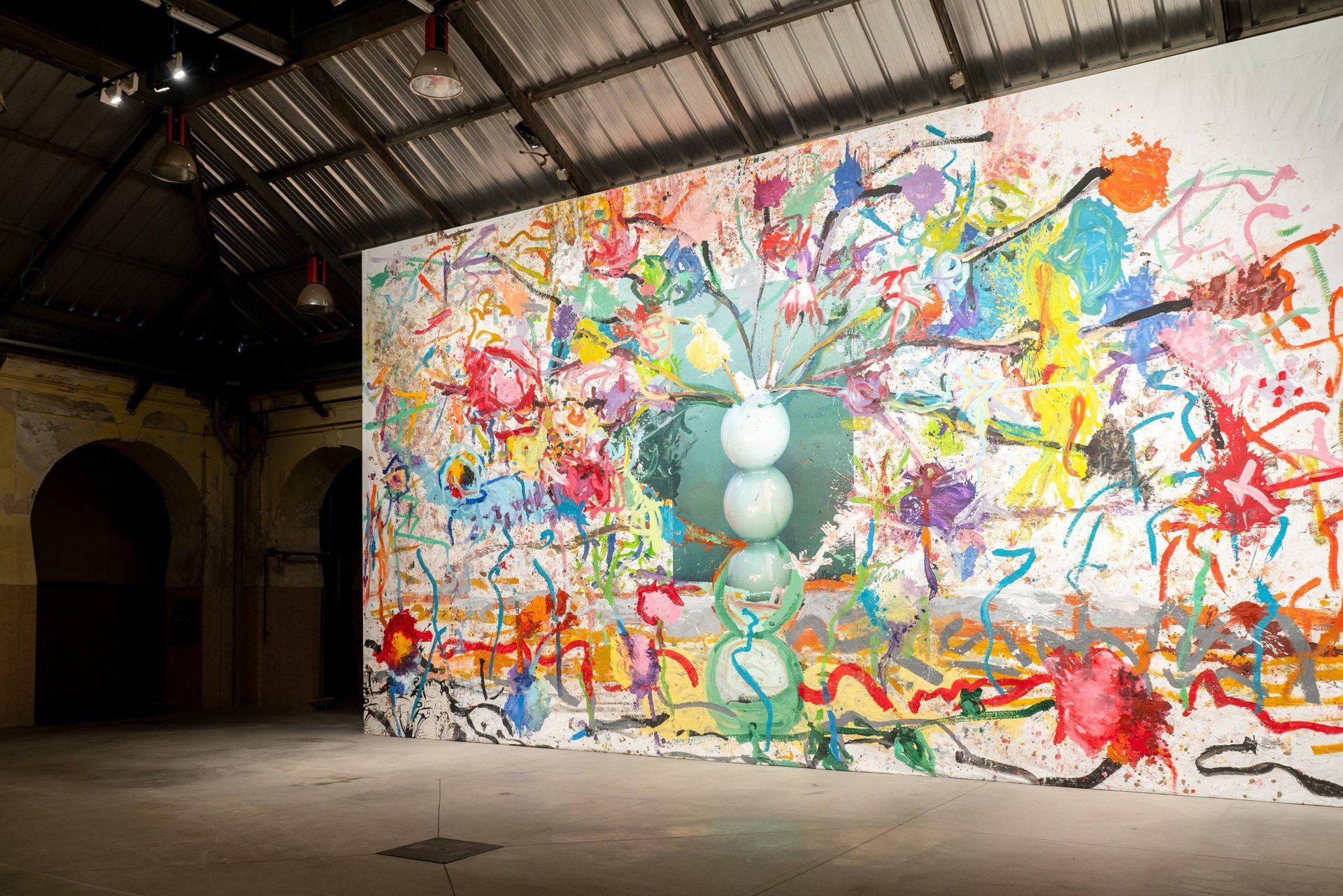 El diálogo entre ambos creadores parte del encargo que el pintor recibió para hacer el dibujo de un niño leyendo sobre un papel roto de un saco de cemento, eje de la película Dolor y Gloria. A partir de ahí nace un reto a través del cual las fotografías de bodegones del cineasta serían la base de grandes cuadros pintados a cuatro manos. Esta exposición es el fruto de numerosas sesiones de trabajo en las que ambos han danzado literalmente sobre el lienzo dejando fluir un espíritu compartido de pasión por la fuerza del color sobre uno de los motivos más básicos de la historia de la representación humana: la flor. El color, gran protagonista sin crédito de las películas de Almodóvar y eje de toda la obra de Galindo, aquí, bajo la bella excusa de la flor, toma una nueva forma contundente y desnuda.a muestra, expuest