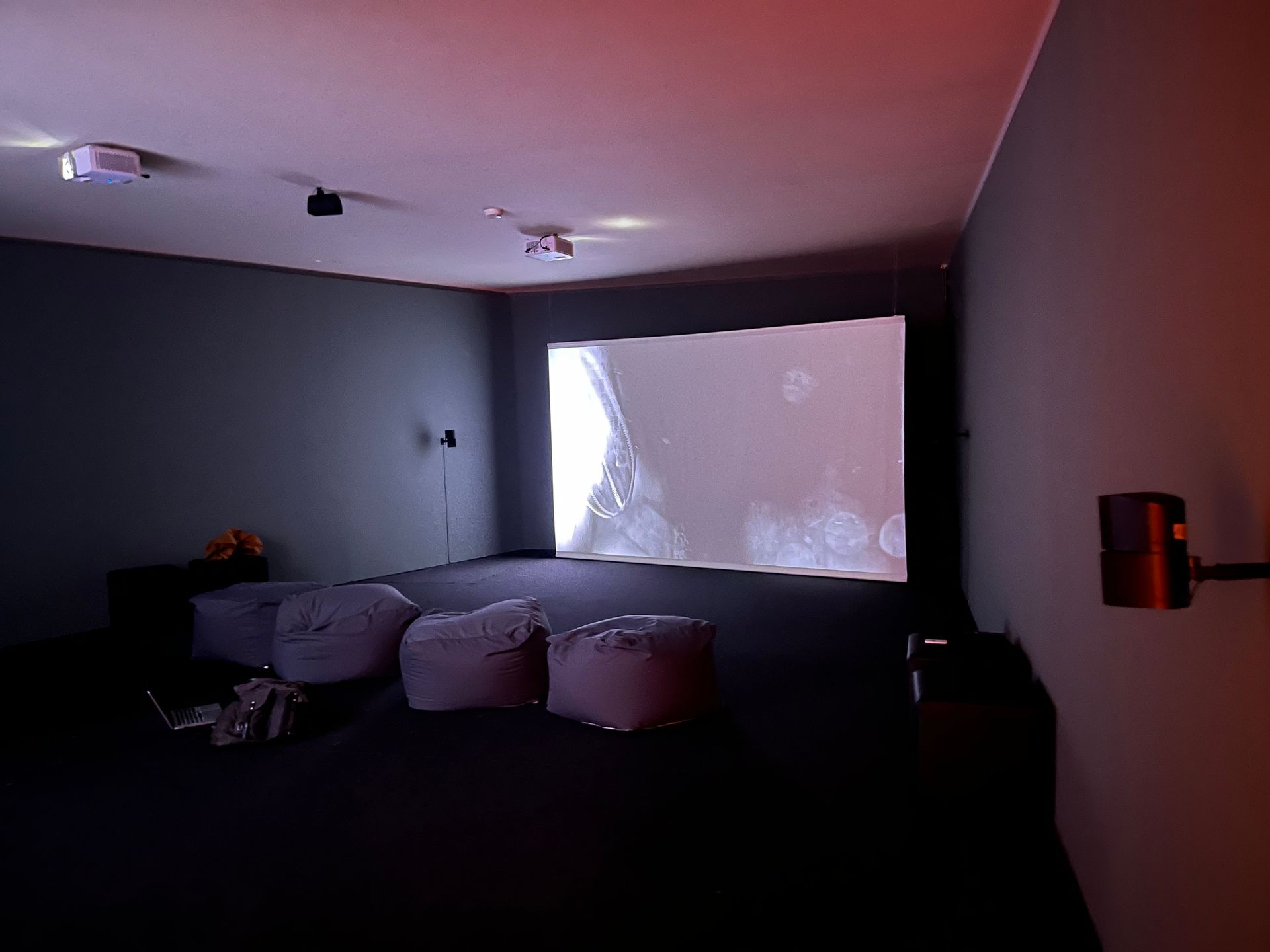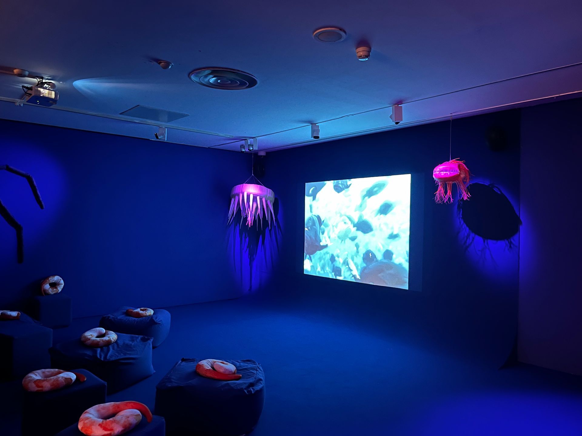La exposición y el programa de actividades que conforman Inteligencia líquida despliegan diversos lenguajes artísticos que crean experiencias inmersivas sobre el océano y los ecosistemas acuáticos. El proyecto anima a los visitantes a imaginar un lugar en que el poder no recaiga exclusivamente en manos de la inteligencia humana o de la inteligencia artificial -que no deja de ser una proyección de la humana-, un lugar en el que los sentidos operen de forma diferente y desde donde percibir sin jerarquías las múltiples formas de vida existentes, para que esa imaginación los empuje a construir un mundo “más que humano” en el que sean capaces de convivir con ellas en lugar de destruirlas.